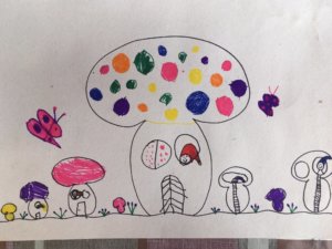Ő: Rajzold le a gombákat, de lakjanak is benne, például tündérek.