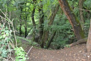 Ez az út ugyanis egy szurdokvölgyben vezetett, meredek hegyoldalak és szakadékos meredélyek között. Lent a sebes és bővízű patak, fent az összeérő lombok, még feljebb az újra vészjóslóan gyülekező fekete felhők. Mentünk tovább, lépéseinket a cipőnkre tapadt sár is egyre nehezítette, természetesen az erdei út is csúszott, omlott és veszélyes is volt, mi pedig az út további kilencvenkilenc százalékát ilyen körülmények között csúsztuk végig.