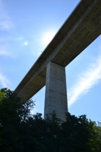 De előbb még átkeltünk a Köröshegyi völgyhídon, aztán alatta is, meg is álltunk, hogy lássuk, milyen óriási. A majdnem hétévesek szerint ez a híd majdnem az égig ér, és igaz, ami igaz, én is éppen így láttam.
